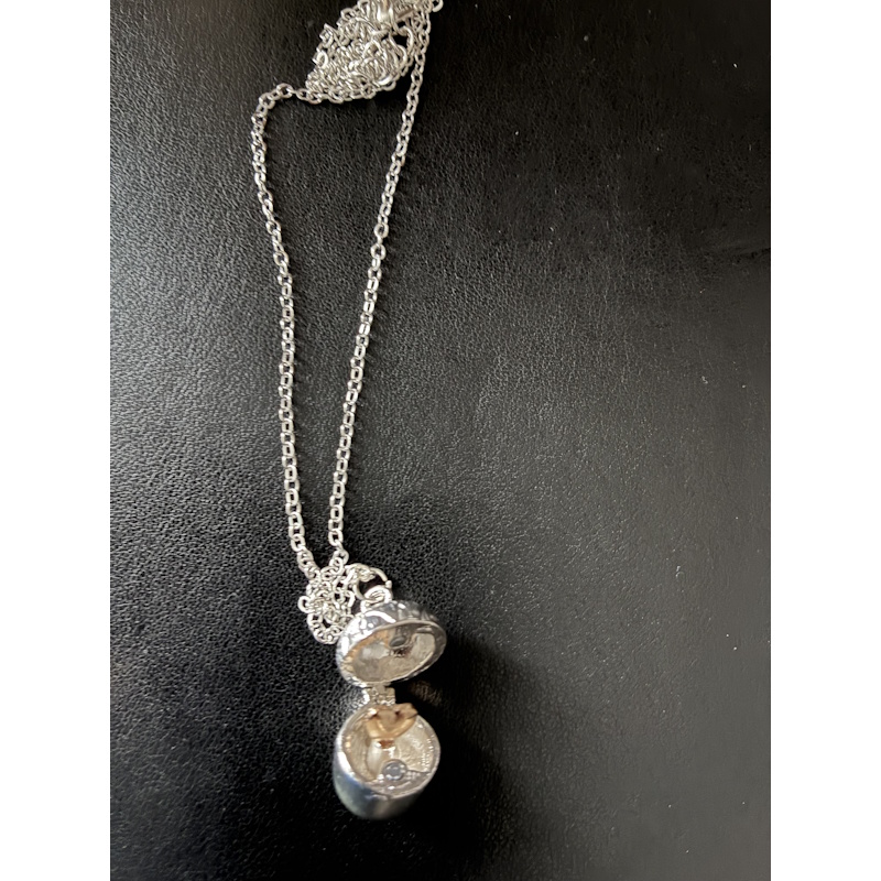 The acorn and necklace are made of quality stainless steel which are hypoallergenic, lead-free and nickel free. The nut section hinges open to reveal a small heart.