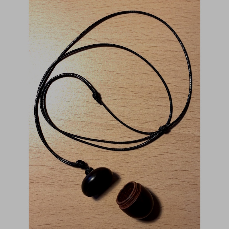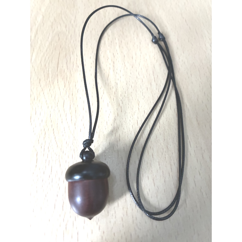 Wooden acorn pendant with a thin leather adjustable necklace.